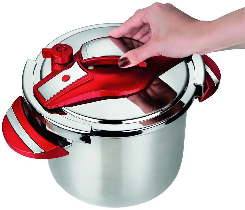 Εύκολο σύστημα ανοίγματος και κλεισίματος του σκεύους με το ένα χέρι. Η νέα χύτρα ταχύτητας Chroma διαθέτει εξελιγμένο καπάκι που ασφαλίζει σε οποιαδήποτε θέση με μία μόνο κίνηση!