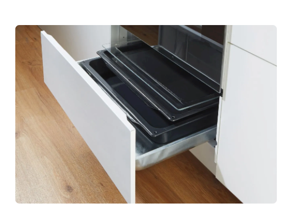 Αν έχεις ταψιά, σχάρες, ταψάκια και δεν ξέρεις πού να τα βάλεις, μην αγχώνεσαι. Οι περισσότερες κουζίνες μας έχουν πρακτικό συρτάρι αποθήκευσης για όλα τα αξεσουάρ σου. Τέρμα το ψάξιμο στα ντουλάπια!