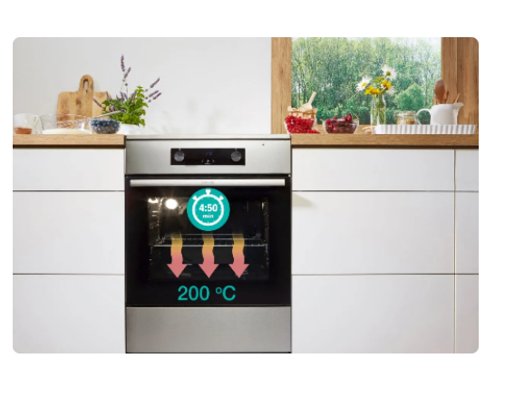 Ο φούρνος OptiBake φτάνει τους 200°C σε 4,5 λεπτά! Ναι, τόσο γρήγορα. Δηλαδή, 30% πιο σύντομα από ό,τι συνήθως. Και όταν είναι έτοιμος, σε ειδοποιεί με ήχο και φως. Οπότε, ακόμα κι αν σου ήρθε η όρεξη για κεκάκι ξαφνικά, είσαι καλυμμένος!