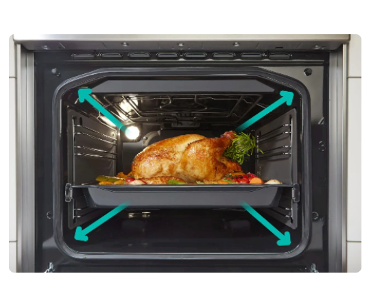 Το μεγάλο εσωτερικό, η έξυπνη κυκλοφορία αέρα και η ομοιόμορφη θερμότητα σου δίνουν την ευκαιρία να φτιάξεις ποσότητες για πάρτι, χωρίς να θυσιάσεις τη γεύση ή την υφή. Το φαγητό σου ψήνεται σωστά σε όποιο ράφι κι αν το βάλεις.