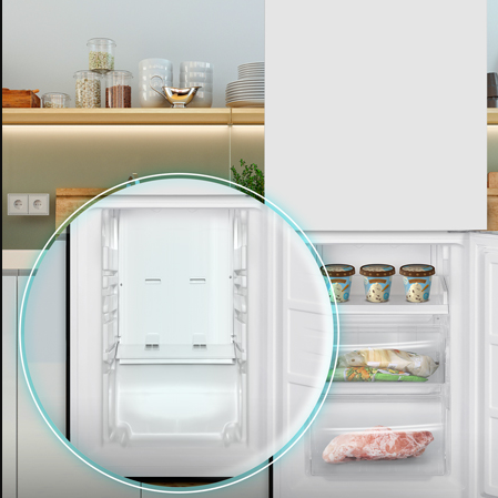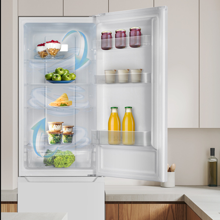 Οι ειδικά σχεδιασμένοι αεραγωγοί, μεταφέρουν τον αέρα ομοιόμορφα σε όλο τον χώρο του ψυγείου. Οι θήκες, τα ράφια και τα συρτάρια είναι κατασκευασμένα έτσι ώστε να διευκολύνουν την κυκλοφορία του αέρα, διατηρώντας τα τρόφιμα φρέσκα και αναλλοίωτα για ακόμα μεγαλύτερο διάστημα.